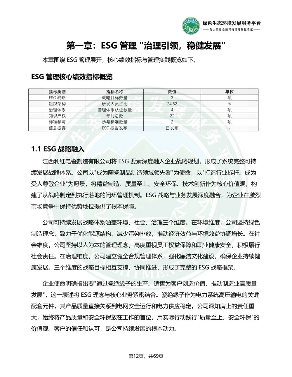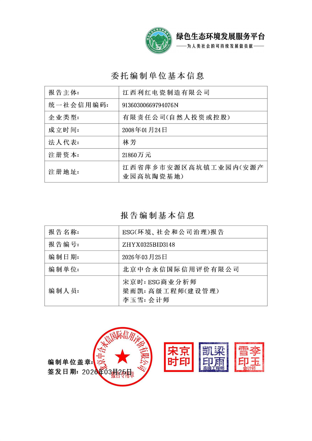 江西利红电瓷制造有限公司_ESG_环境_社会和公司治理_报告
